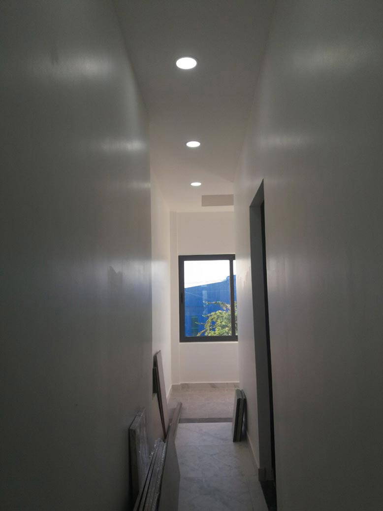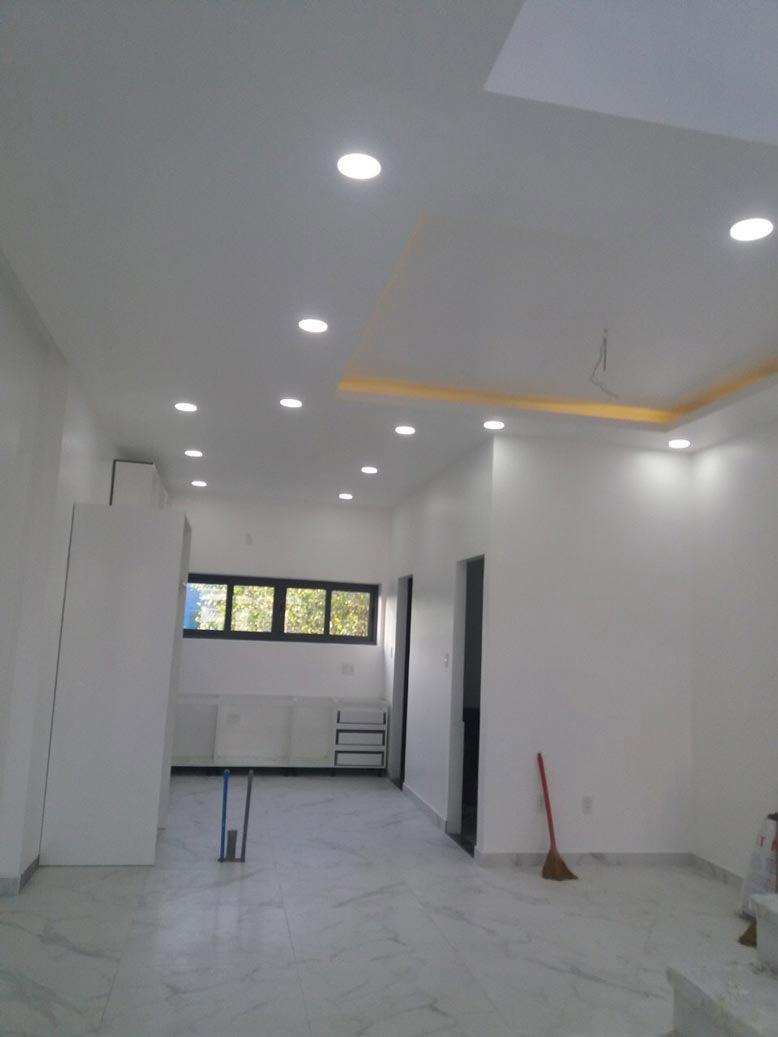Sau khi phần thô của quá trình thi công nhà phố 3 tầng đã hoàn thiện, công nhân của chúng tôi tiếp tục tiến hành sơn sửa, trang trí, dọn dẹp vệ sinh. Trước khi sơn màu, ngôi nhà phố 3 tầng này được chúng tôi phủ một lớp sơn chống thấm. Sơn màu trắng được phủ ngoài cùng tạo nên vẻ đẹp hiện đại cho công trình, đúng như trong bản vẽ kiến trúc. Tất cả cả mọi không gian thi công xây dựng, chi tiết dù là nhỏ nhất đều được công nhân chăm chút cực kỳ kỹ lưỡng.
