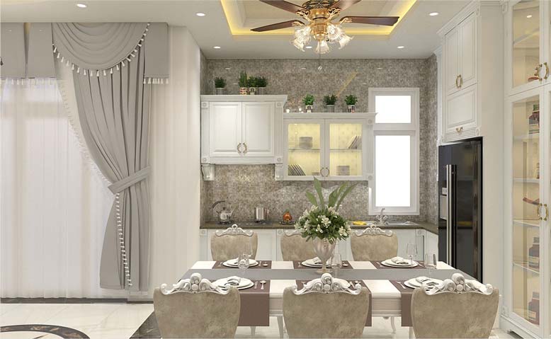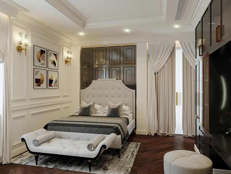Phong cách thiết kế thi công nội thất trọn gói tân cổ điển là sự kết hợp hoàn hảo giữa hiện đại và cổ điển. Phong cách này mang đến một vẻ đẹp mềm mại, nhẹ nhàng và thanh lịch.