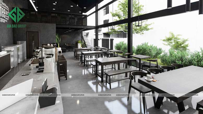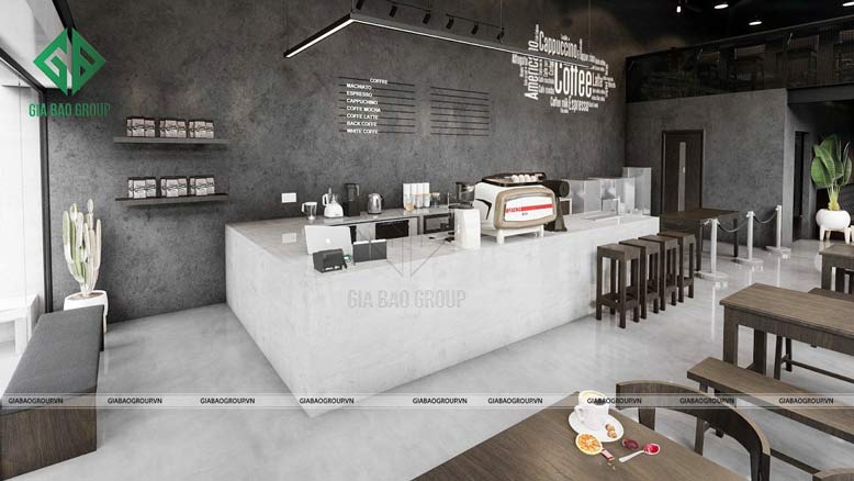 Tham quan công trình thiết kế và thi công nội thất trọn gói quán cafe được thực hiện bởi đội ngũ Gia Bảo Group.