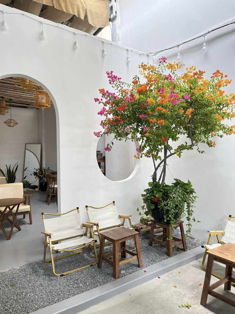 Bố trí không gian mở tận dụng tối đa ánh sáng và cây xanh giúp quán luôn thoáng mát