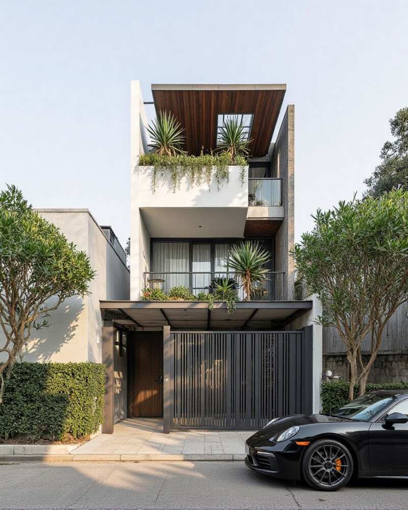 Mẫu nhà phố hiện đại có ban công xanh được nhiều gia đình lựa chọn