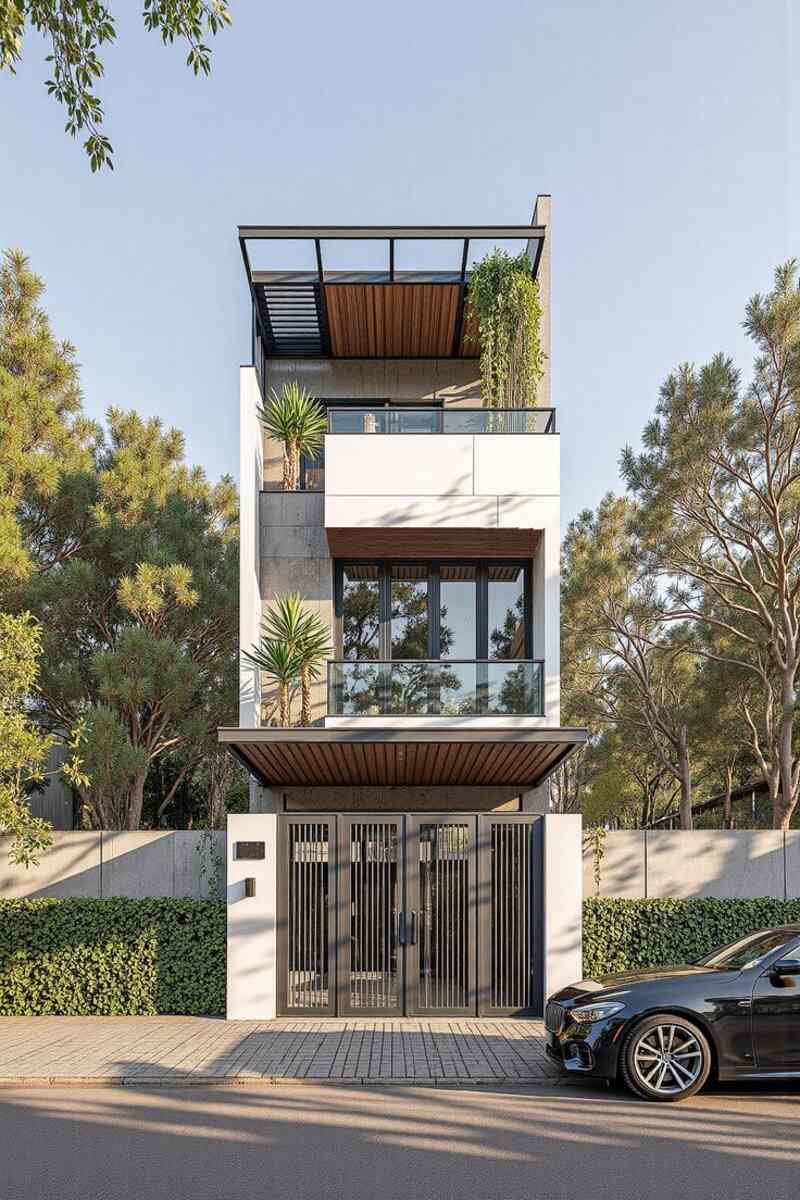 Mẫu nhà phố đẹp kết hợp cây xanh trong thiết kế kiến trúc hiện đại