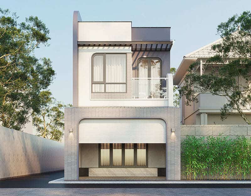 Thiết kế nhà 2 tầng tone màu trung tính hiện đại