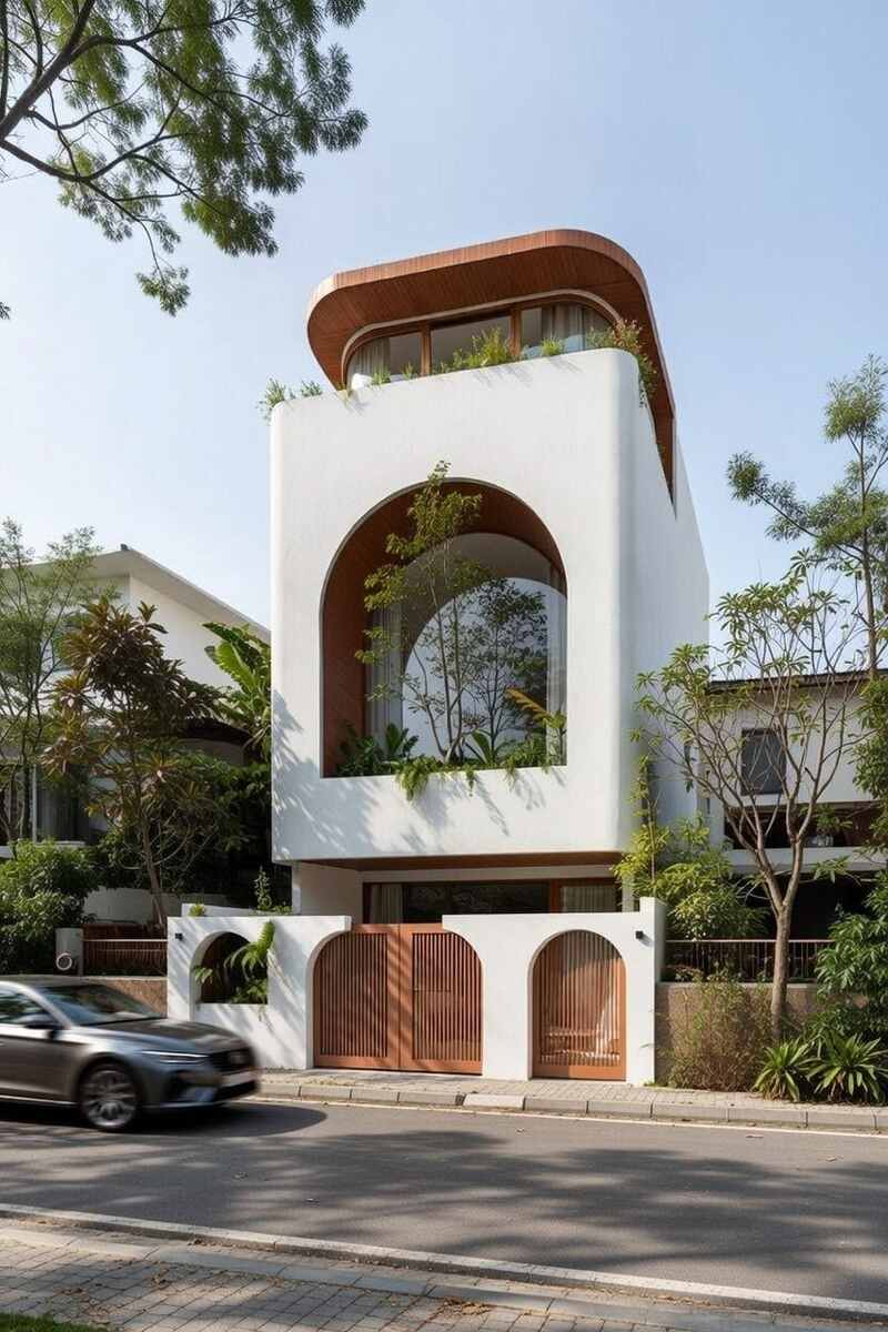 - Thiết kế mặt tiền: Nhiều chi tiết, vật liệu ốp, bo cong, lam… chi phí nhân công tăng.