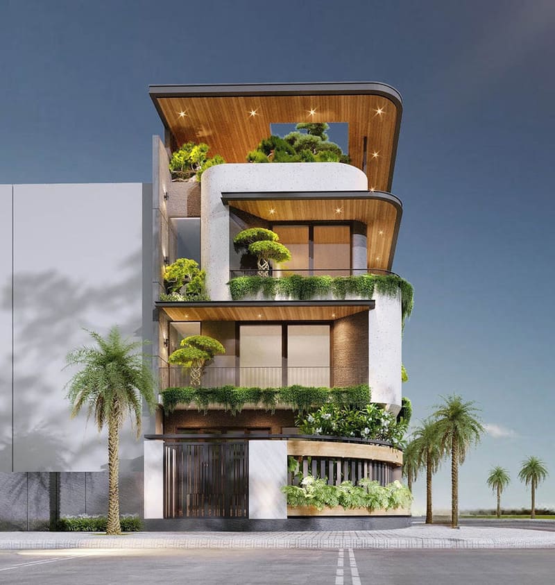 Đây là mẫu nhà cao cấp, phù hợp với những lô đất vuông vức, nằm trong khu nội bộ, dân cư thấp tầng hoặc gần trục đường Nguyễn Thị Thập – nơi quy hoạch ổn định, không bị hạn chế chiều cao. Mẫu biệt thự mini thường gồm 1 trệt 1 lầu, có sân vườn phía trước và lối đi bên hông.