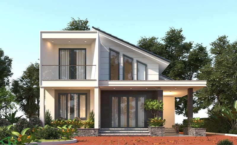 Mẫu nhà mái chéo có trồng cây xung quanh